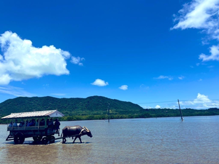 水牛のゆったりした歩調と三線の音色に包まれて、最高にチル。