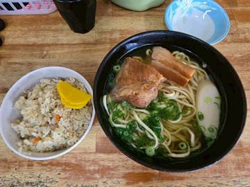 骨付きスペアリブとラフテーのミックス+ジューシー(炊き込みご飯)。