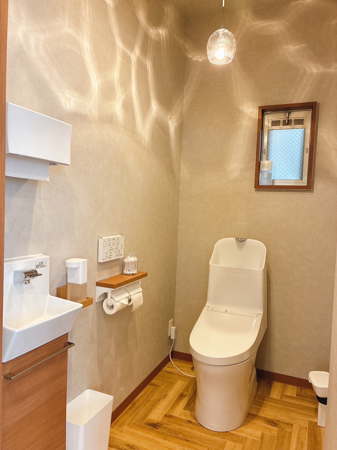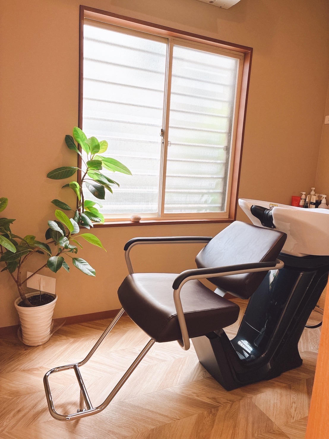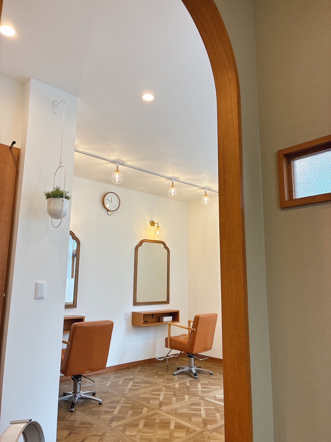 美容室 ①シンプルながらも洗練されたデザインで、居心地の良さと機能性を兼ね備えた美容室に仕上がっています。お子様連れも大歓迎です! ②木目調の床と観葉植物のグリーンが調和し、お客様にリラックスしていただける温かな空間になりました ③オーナー様こだわりのアーチオープン+小窓 ④清潔感のある落ち着いた雰囲気のお手洗い 一覧に戻る